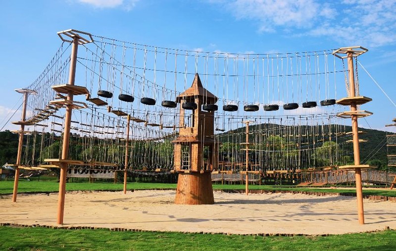 休閑游樂篇景區有大型滑草場、戶外射擊場、樹頂玻璃棧道、垂釣中心、兒童攀爬樂園、森林探險等十多個生態游樂項目,