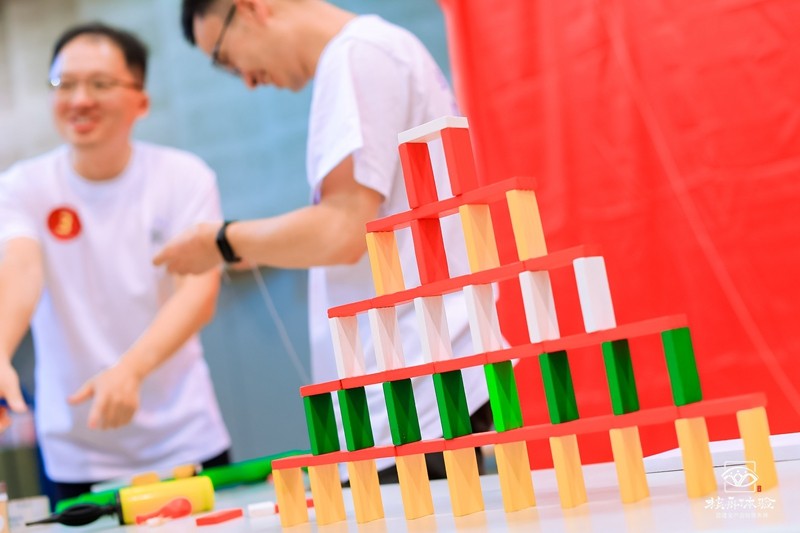 看著一點(diǎn)一點(diǎn)搭建起來(lái)的裝置和多米諾,展現(xiàn)了同宜醫(yī)藥小伙伴們的創(chuàng)意及精益求精的態(tài)度。萬(wàn)丈高樓平地起,要搭建如此精密的機(jī)關(guān),靠得是集體的智慧與配合,在這里,團(tuán)隊(duì)凝聚力得到了最好的體現(xiàn)。