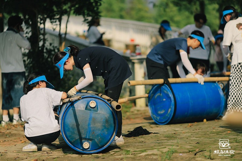 木筏制作環(huán)節(jié),在大家精心設(shè)計并自制木筏的過程中,