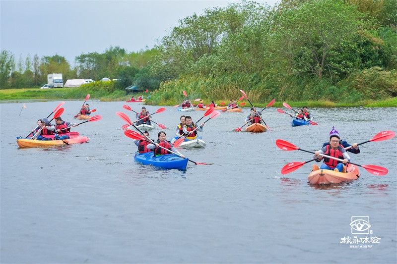 大家穿上救生衣,登上色彩鮮艷的皮劃艇,