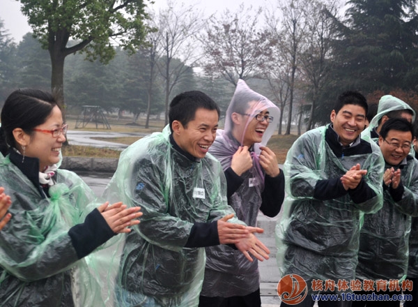 江南的初冬,陽澄湖畔,氣溫不低,但空氣濕度很大,天氣還下著小雨,所以還是蠻冷的。可是,這樣的天氣似乎并沒有讓Teleplan團隊的氣氛降低,激情減弱,在核舟教練團隊的帶動下,大家更加充滿了活力與笑容,穿上雨披,開始了課程游戲的體驗與互動。