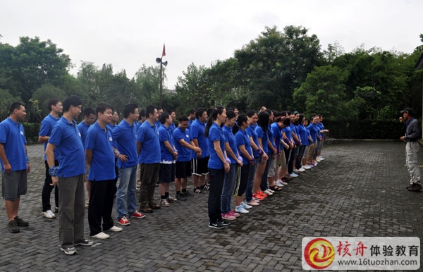 8月15日上午9時,著裝整齊的歷奇—先進的60位伙伴來到了核舟體驗蔣巷拓展訓練基地。在核舟體驗教練的帶領下已歡樂的互動開始一天的體驗式培訓。