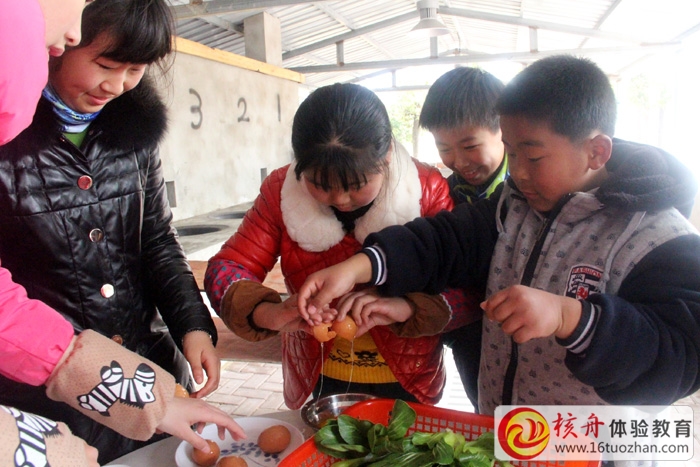 孩子們在老師的指導下現場學習打雞蛋,包餃子,切番茄,削土豆皮等基本做飯的要領……