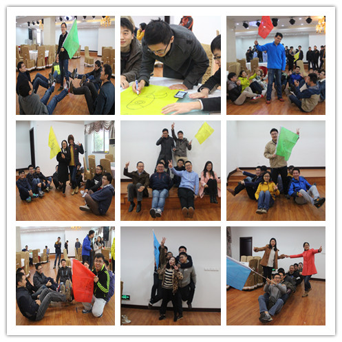 很快就要進入今天的挑戰項目了,為了能夠培養大家的團隊意識和超強的團隊凝聚力,吳勇老師將這批學員分成8個小組,通過剛剛的互動,這時學員也變得積極了,每個小組忙著選舉隊長、啟隊名、想口號,畫各自小組的圖騰,互相配合的團隊風采展示,忙的不亦樂乎,見此情景你很難想象他們是剛從蘇州各電力公司過來完全陌生的一群人。