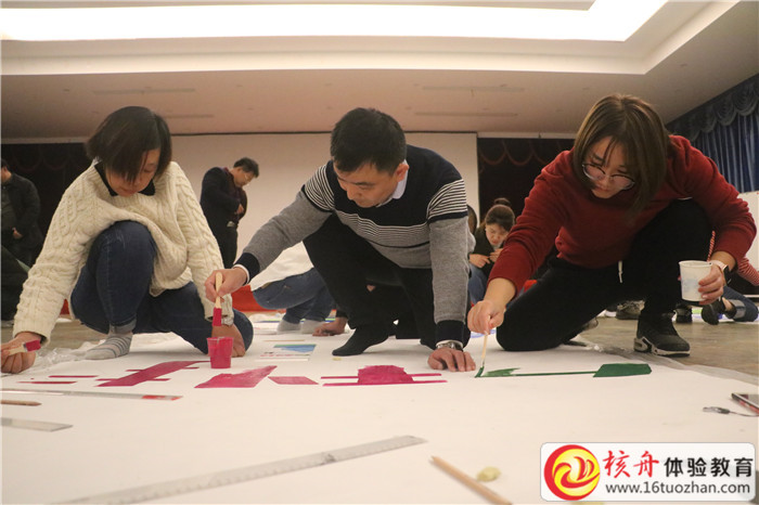 今天最后一個活動就是共繪藍圖,我們組成4個小組,小組內部分工也很明確,有負責計算尺寸的,有負責畫的…通過大家的認真磨合以及教練的指導建議,富淼科技的小伙伴們最終通力合作,創作出一幅幾近完美的作品。