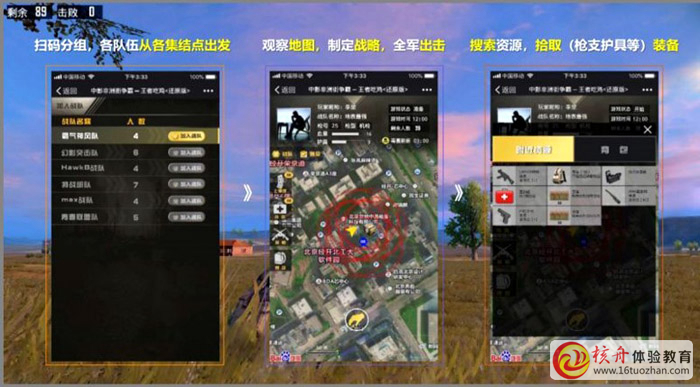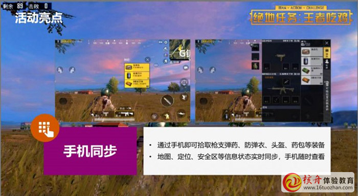 與手機同步,可以實現在現實戰斗場地撿彈藥、防彈衣、頭盔、藥包等;