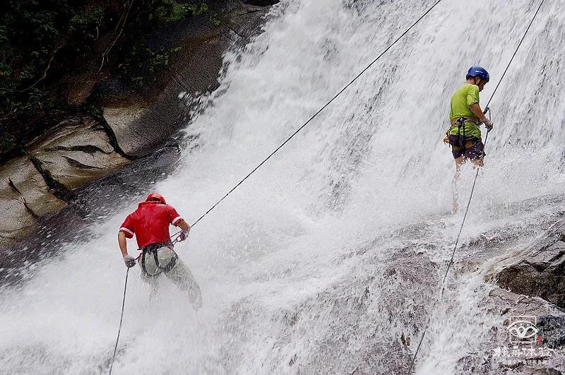 由于長期被瀑布沖刷的石頭很滑,長滿青苔,再加上溪水對下降者的沖擊,
