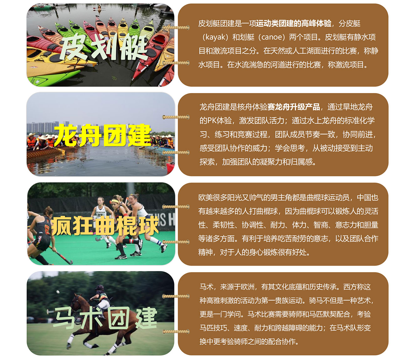 比如:龍舟團建是核舟體驗賽龍舟升級產品,通過旱地龍舟的PK體驗,激發團隊活力;通過水上龍舟的標準化學習、練習和競賽過程,團隊成員節奏一致,協同前進,感受團隊協作的威力;學會思考,從被動接受到主動探索,加強團隊的凝聚力和歸屬感。